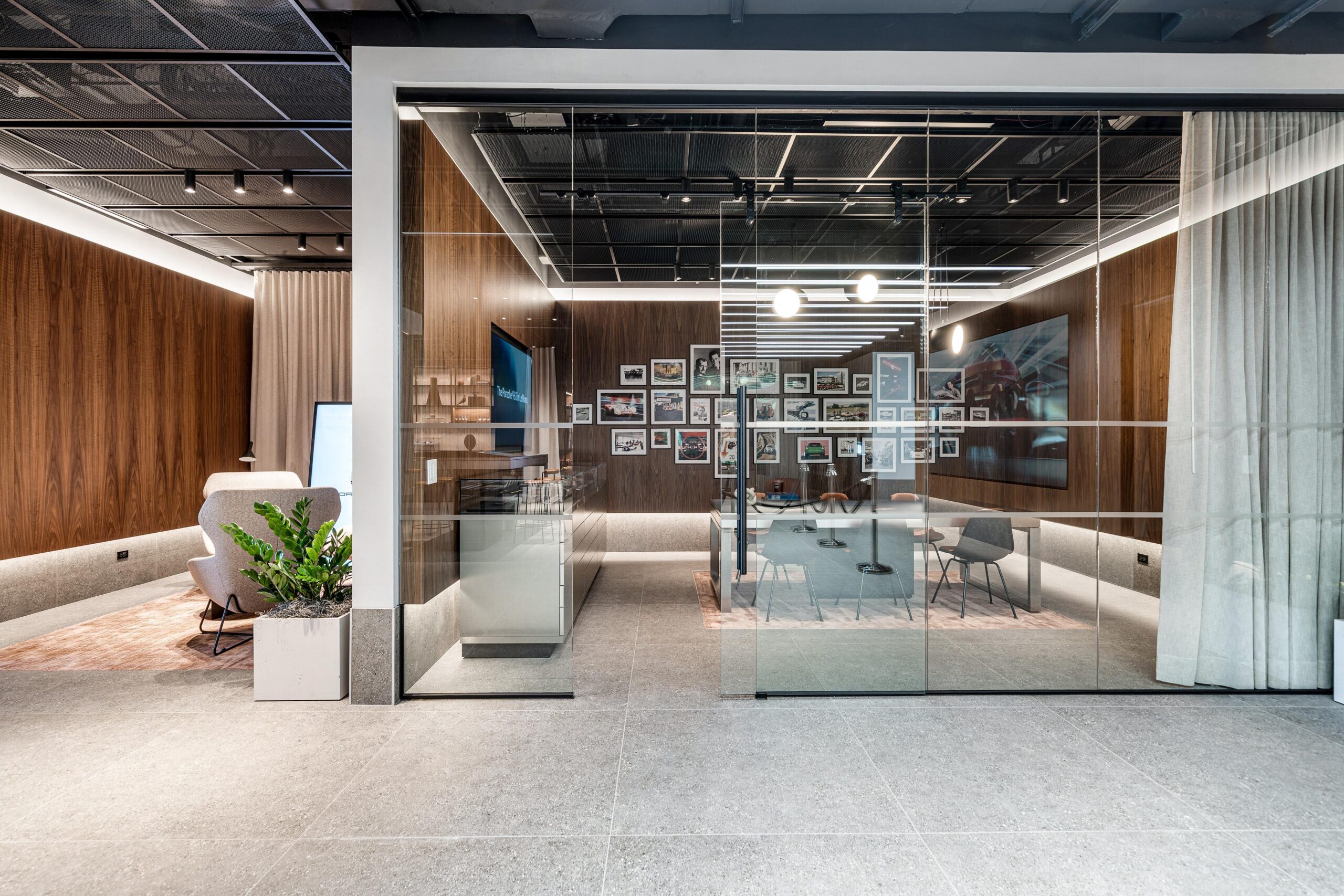 Completed Summer 2025, this 4,000-square-foot tenant build-out transforms a former bank within a multi-story building into a premium retail experience for Porsche. The project features a sleek gallery environment with hospitality-driven spaces, integrated brand storytelling, and a museum-style vehicle display that celebrates Porsche’s heritage. Indigo successfully navigated complex occupancy requirements to incorporate a vehicle within a Mercantile space under residential assembly.