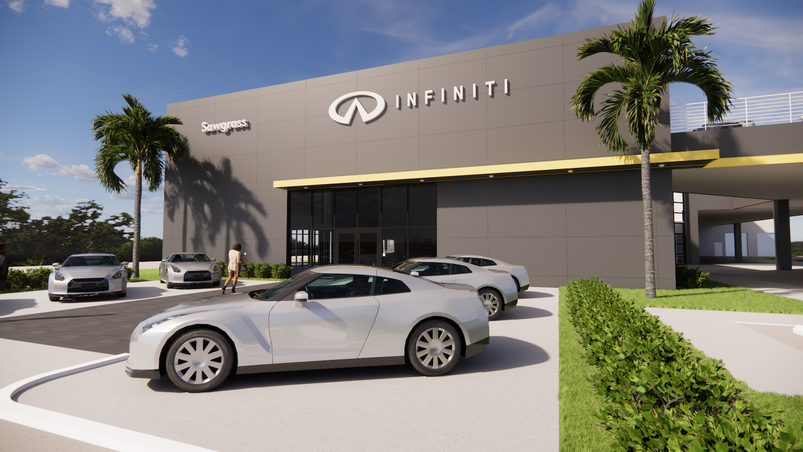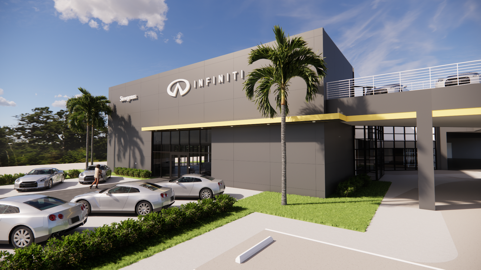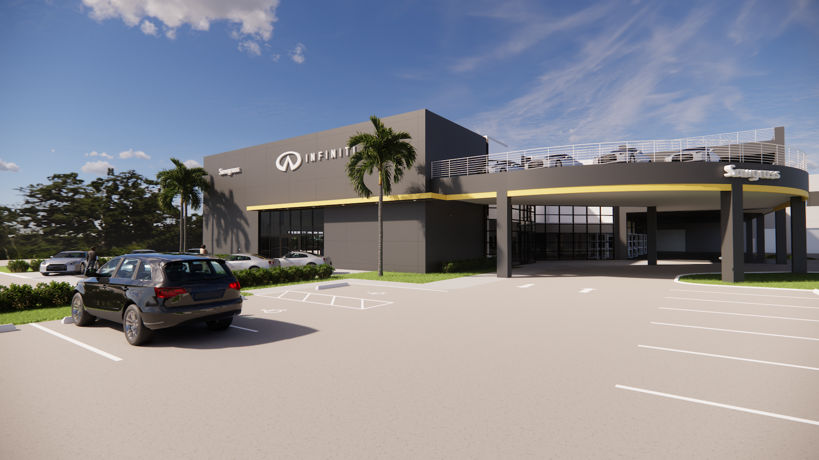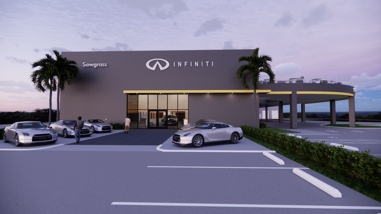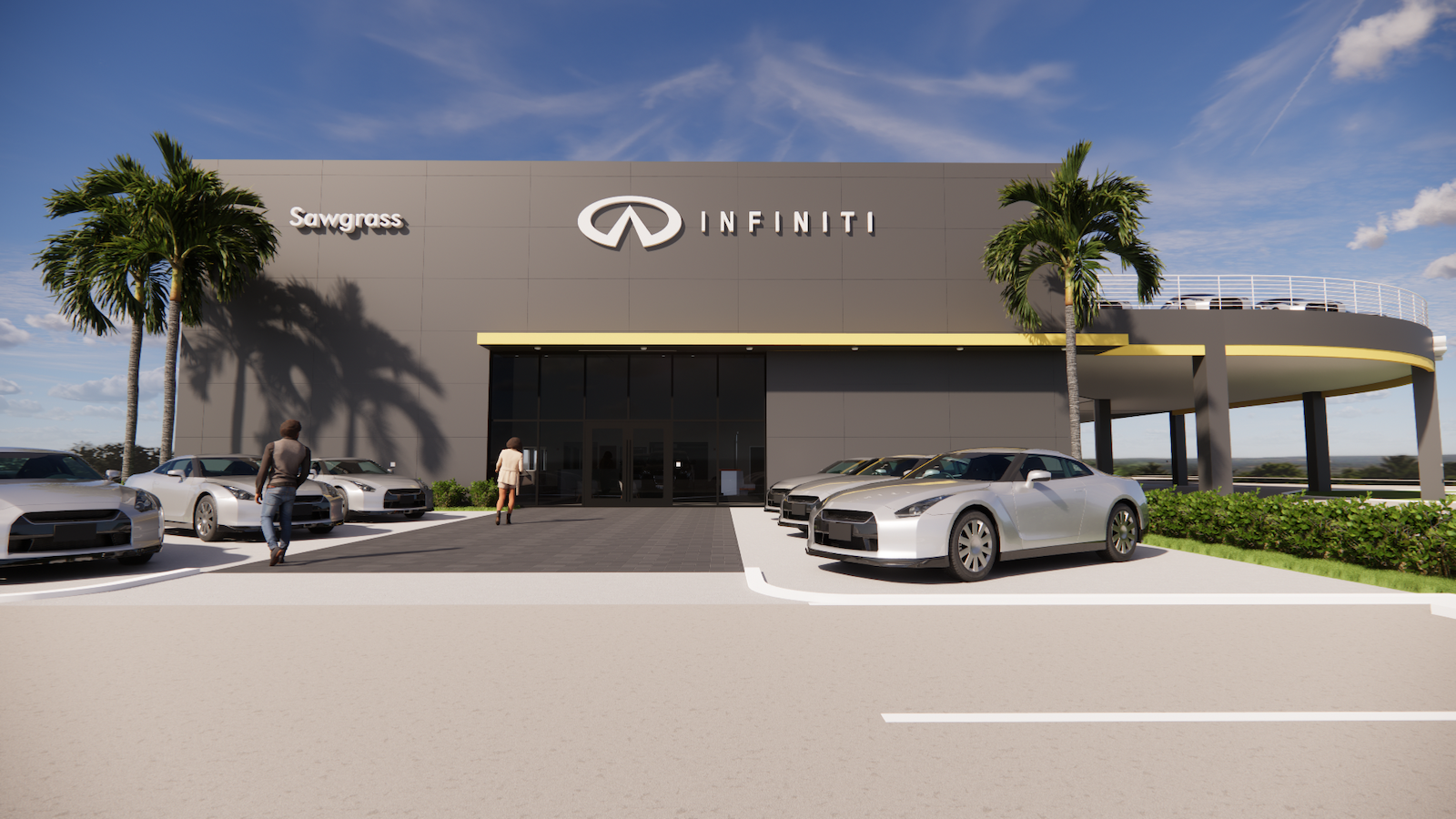 Currently under permitting, this project will renovate the ground-floor showroom and office areas of Sawgrass Infiniti. Exterior improvements include new ACM panels and fresh exterior paint, while interior upgrades feature new paint, furniture, floor tile, and an updated layout — creating a refreshed, modern environment for customers and staff.