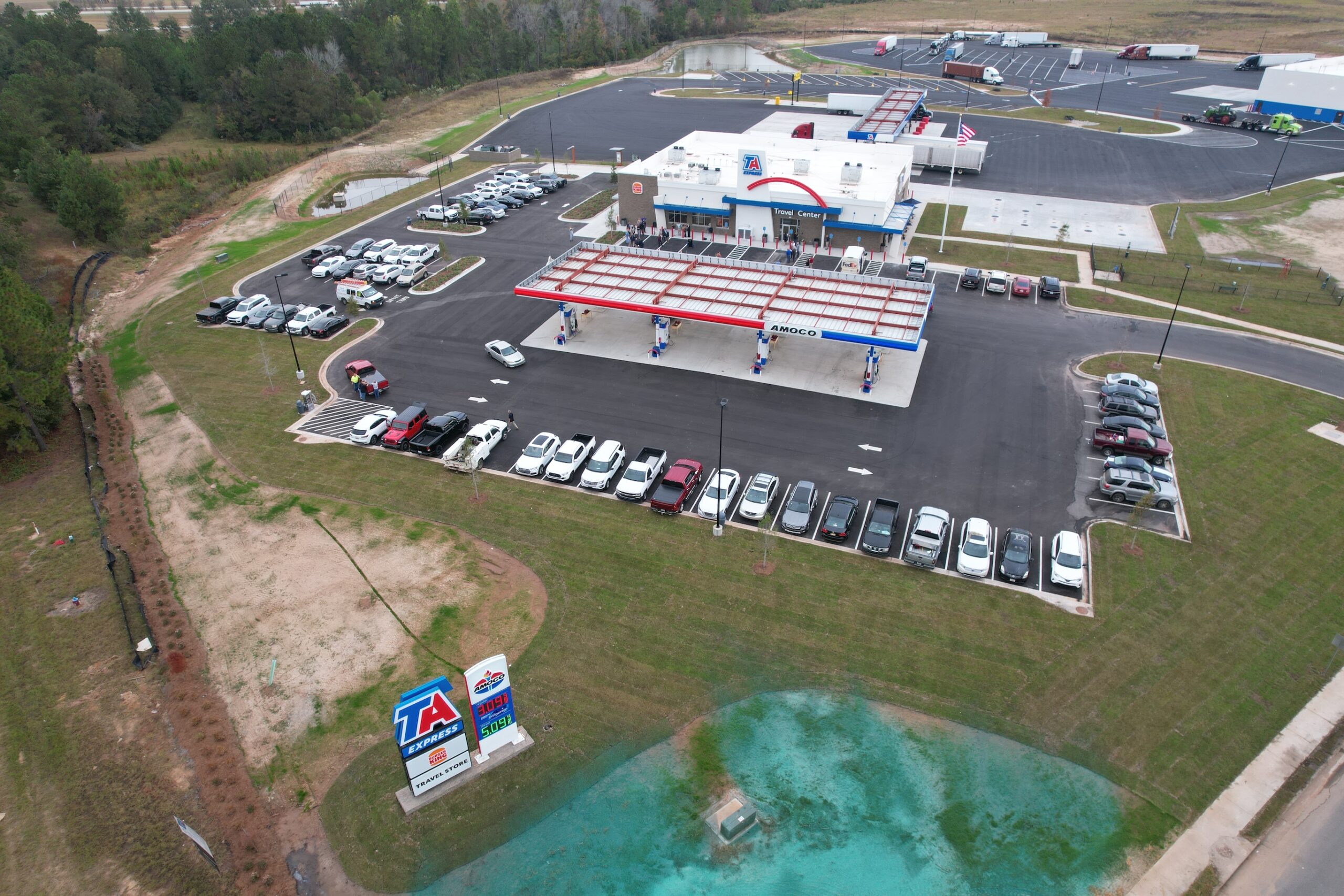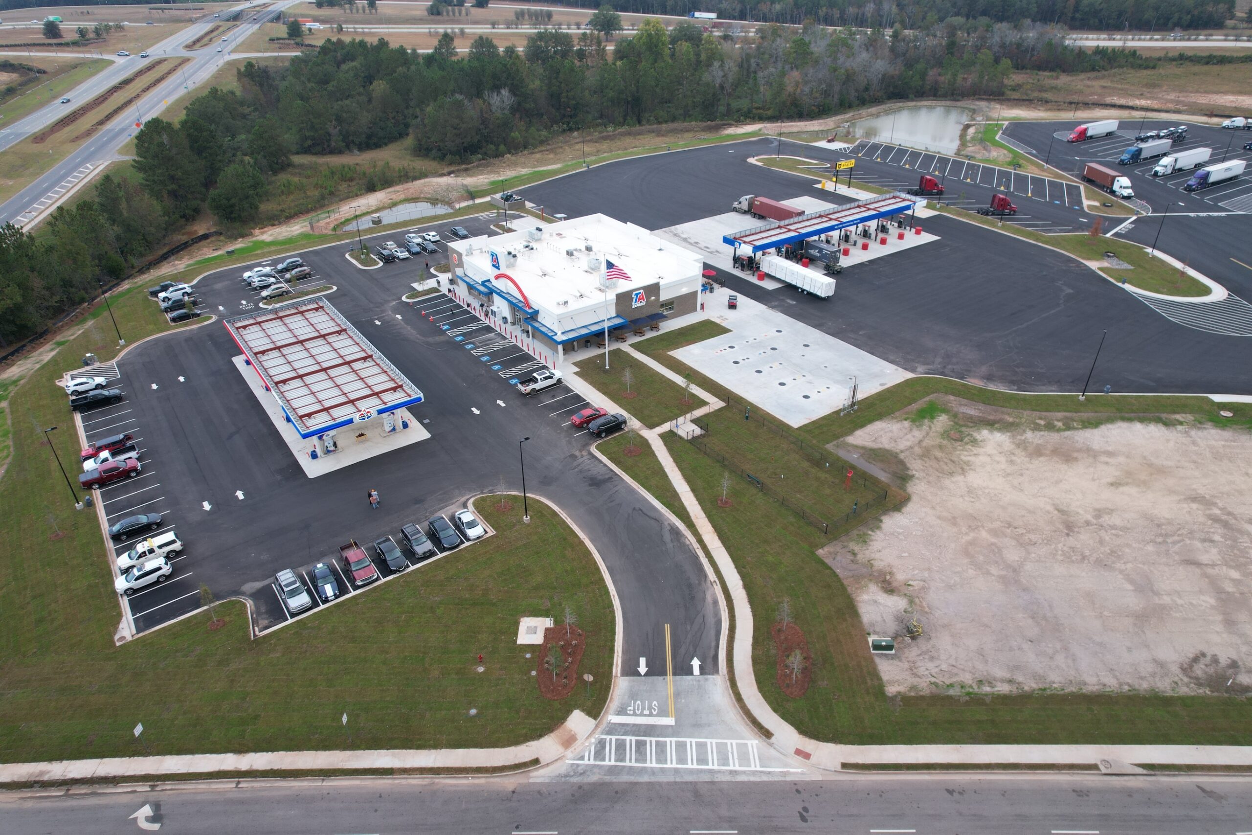 Completed in 2022, this project involved the new construction of a TA Travel Center on approximately 19.39 acres of undeveloped land in Bulloch County, Georgia. The development includes an 11,000-square-foot convenience store, an 11,156-square-foot truck repair shop, an 8-dispenser automobile fueling canopy, and a 9-dispenser truck fueling canopy. The site was designed to accommodate high-volume traffic while supporting efficient fueling, service, and retail operations.